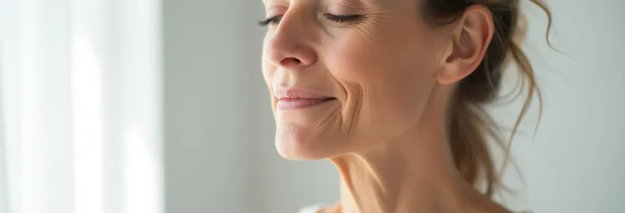 La position des sourcils et la profondeur du sillon nasogénien complètent cette cartographie du vieillissement. Un sourcil qui descend de quelques millimètres alourdit le regard et ajoute instantanément des années. Le sillon qui se creuse entre le nez et la commissure des lèvres crée une ombre verticale caractéristique des visages matures. Ces marqueurs fonctionnent en système : leur correction isolée produit un effet limité, mais leur traitement simultané génère une transformation disproportionnée.